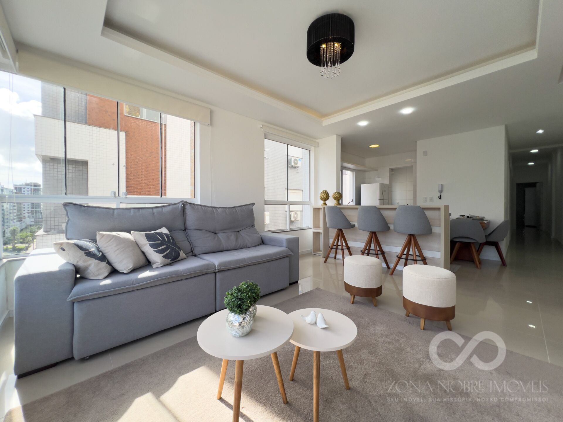 Apartamento composto de 3 dormitórios sendo 1 suíte, amplo living estar e jantar com sacada integrada, cozinha com churrasqueira, área de serviço separada, banheiro social. Mobiliado, decorado e climatizado.
